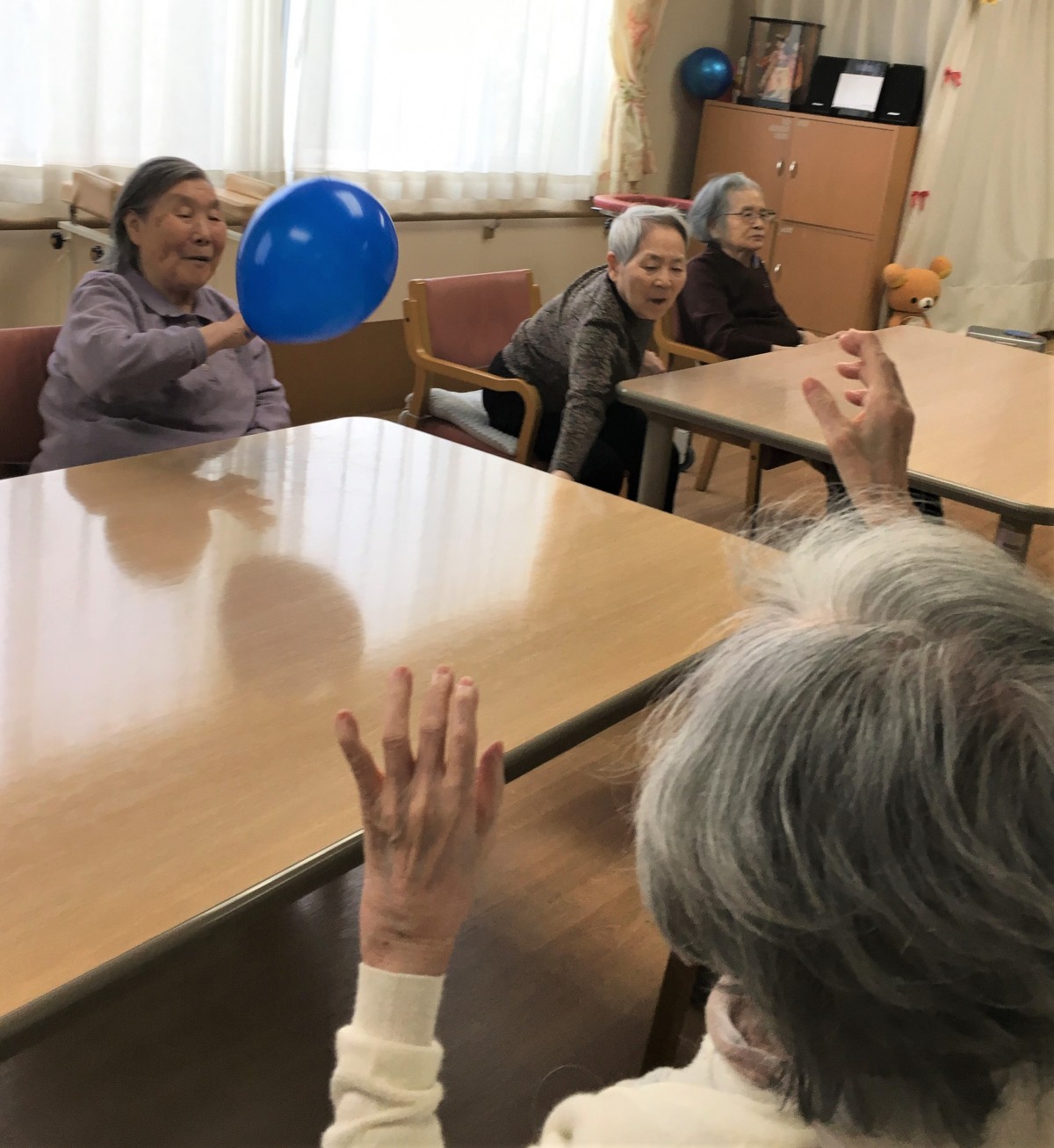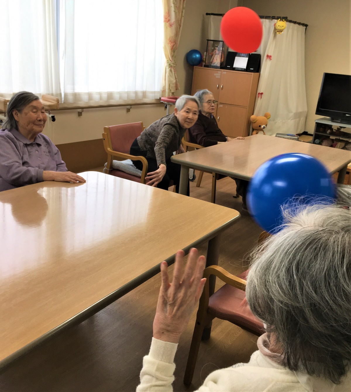 1階フロアーの皆さまは大好きな風船バレーに興じておられましたが、いつものとはひと味違うようです。