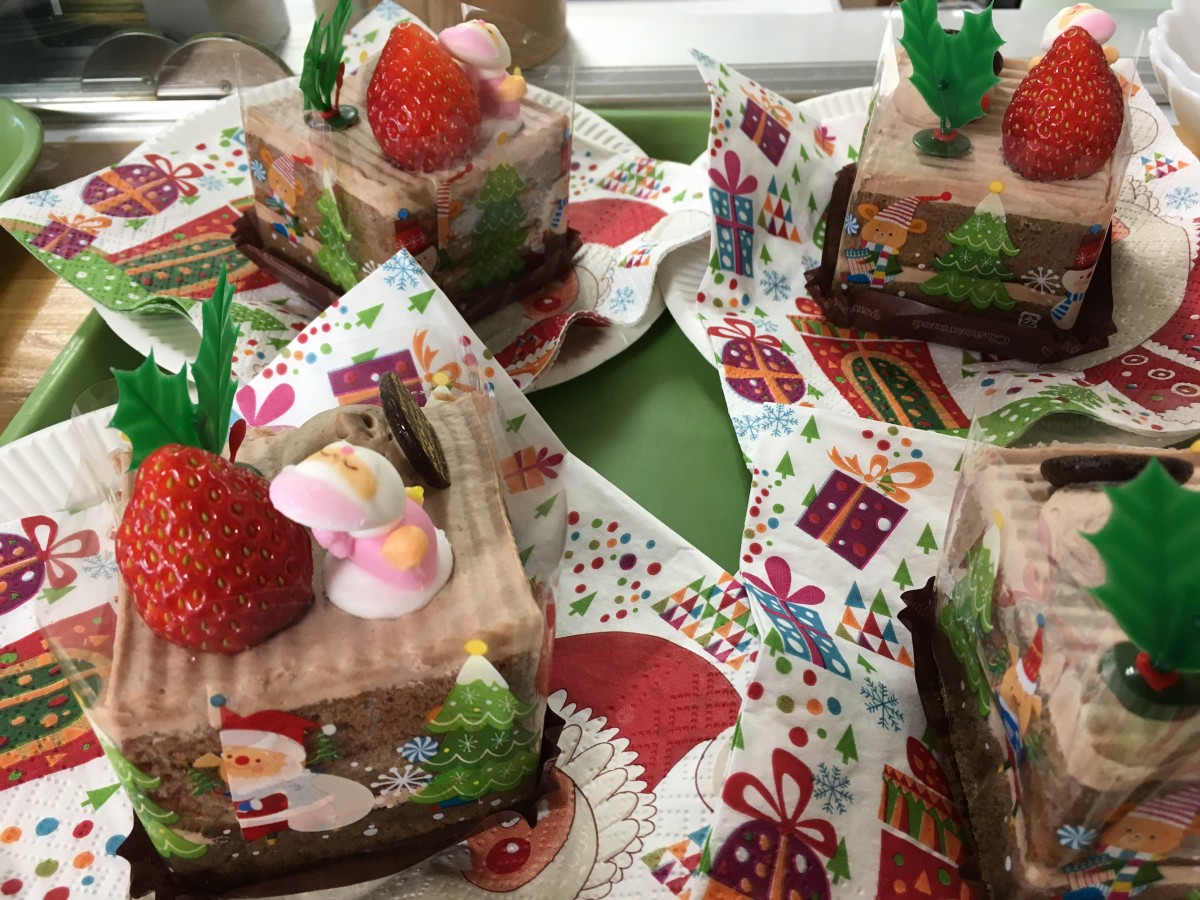 おやつは皆さんのリクエストチョコレートケーキとオレンジジュースです。