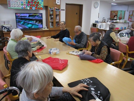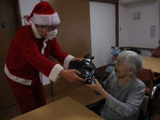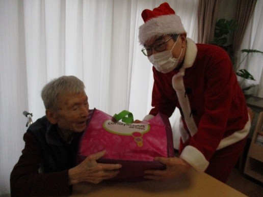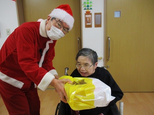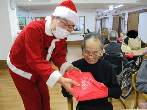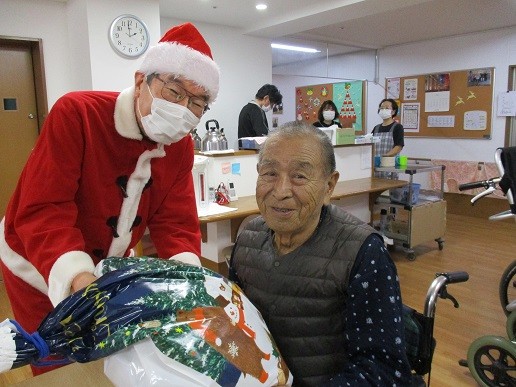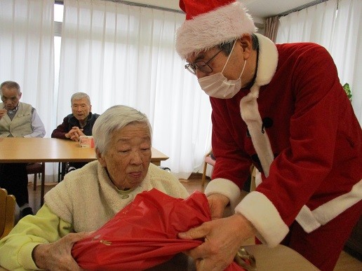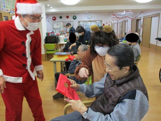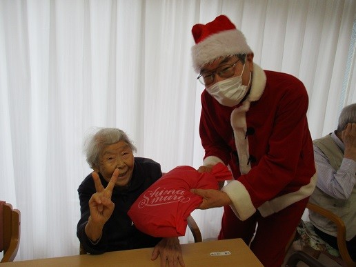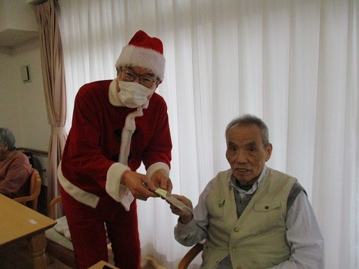 サンタとトナカイ…(サル)の登場に入居者様手を叩いて笑ってる方 手を振ってくださる方沢山いました(^o^) サンタが一人一人にプレゼントを♪