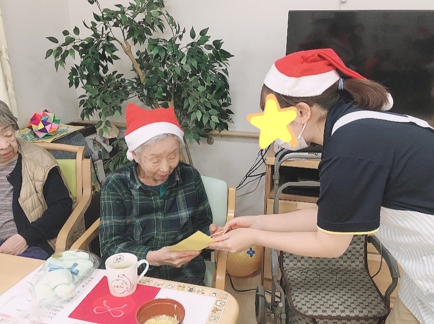 サンタさんからのプレゼントの後は、職員からクリスマスカードをお渡ししました!