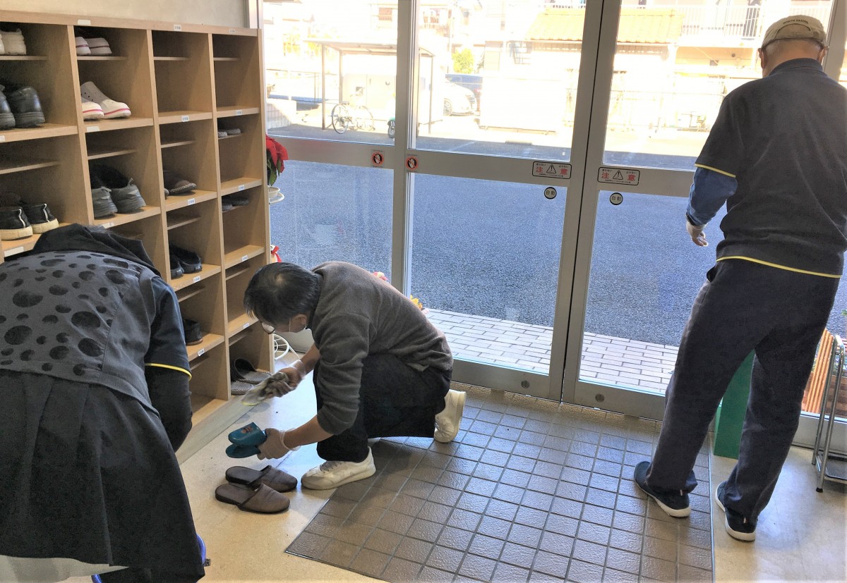 みんなの家上尾瓦葺の顔である玄関はスタッフ3名掛かりで隅々までピッカピカに磨き上げました!