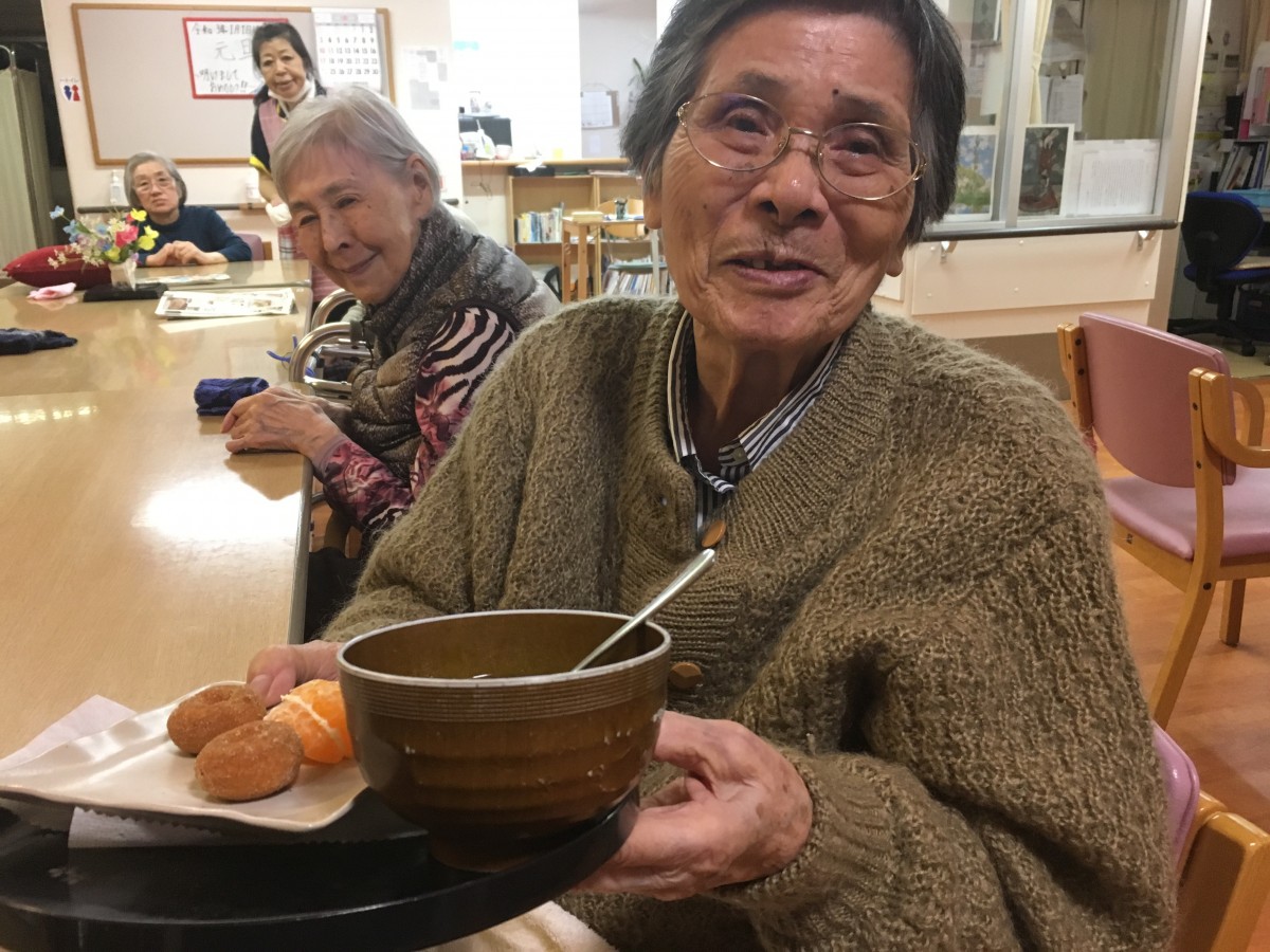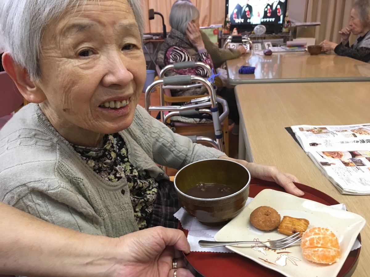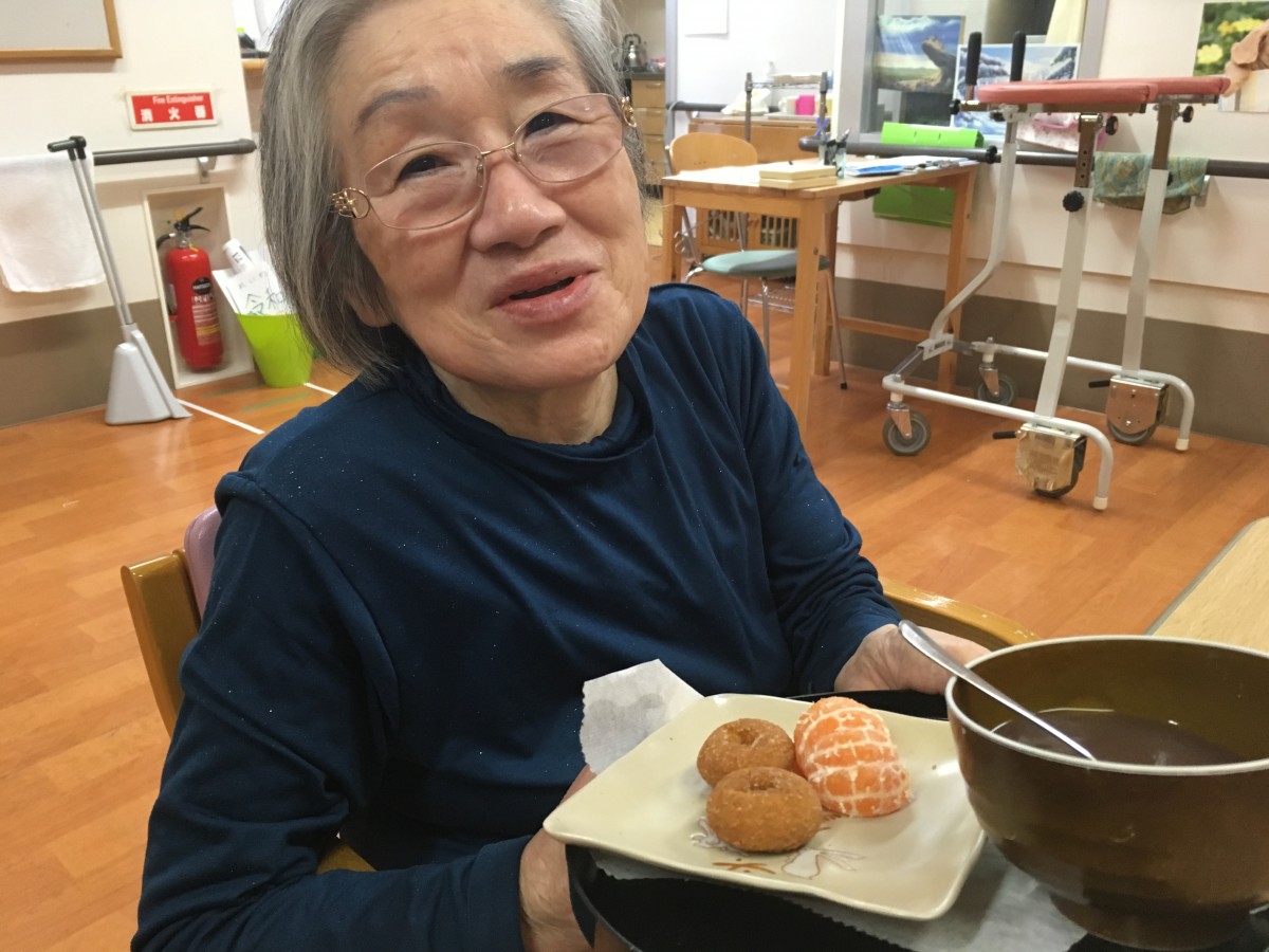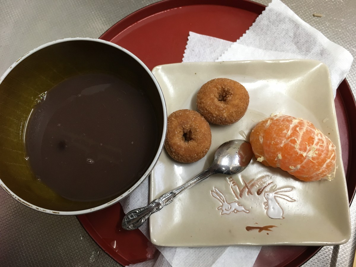 おしるこ、ドーナッツ、みかんを食べながら紅白歌合戦を見たり…とのんびり過ごしました。12時まで起きておられる方はさすがにいらっしゃいませんでしたが、いつもよりは皆様夜更かしをされたようです。