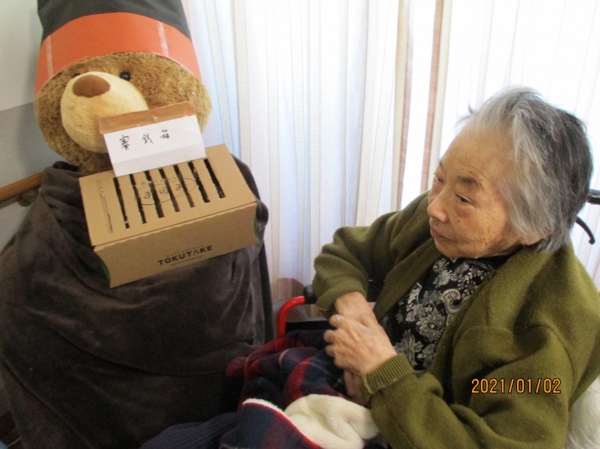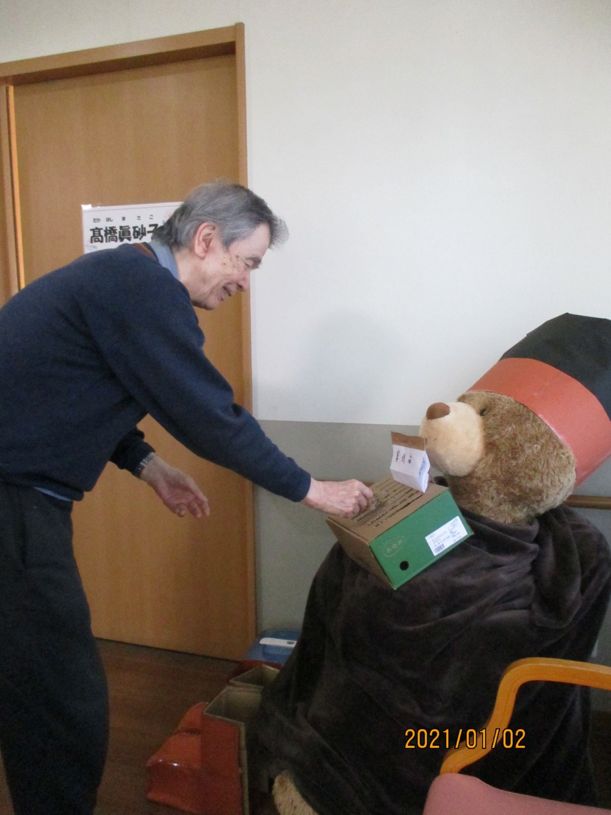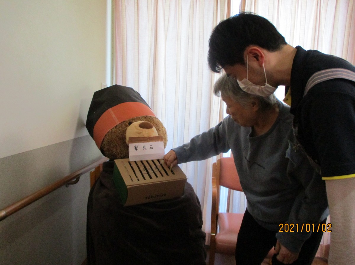 今回は外に初詣行けない分、施設の中でお賽銭箱にお金を入れて