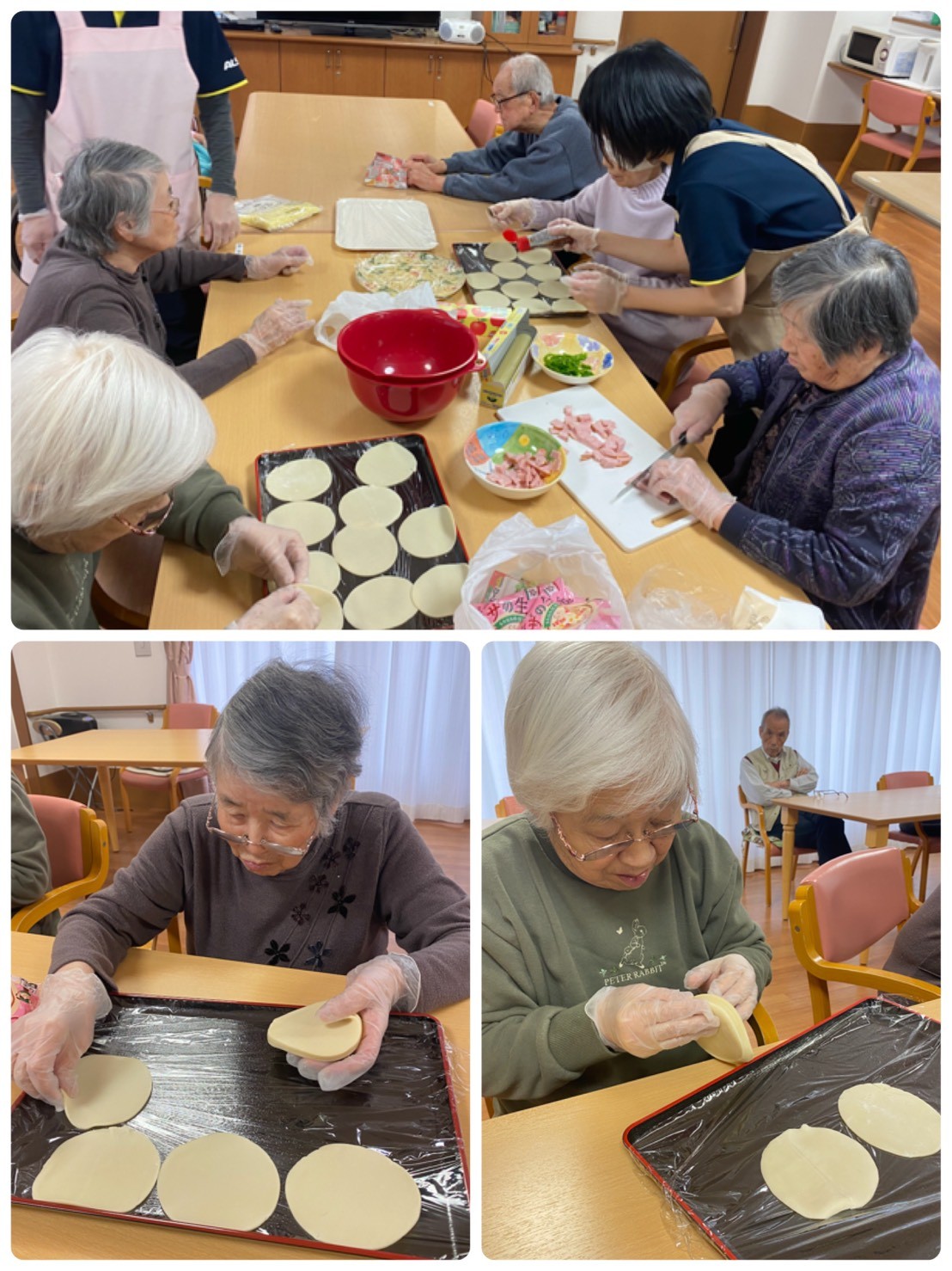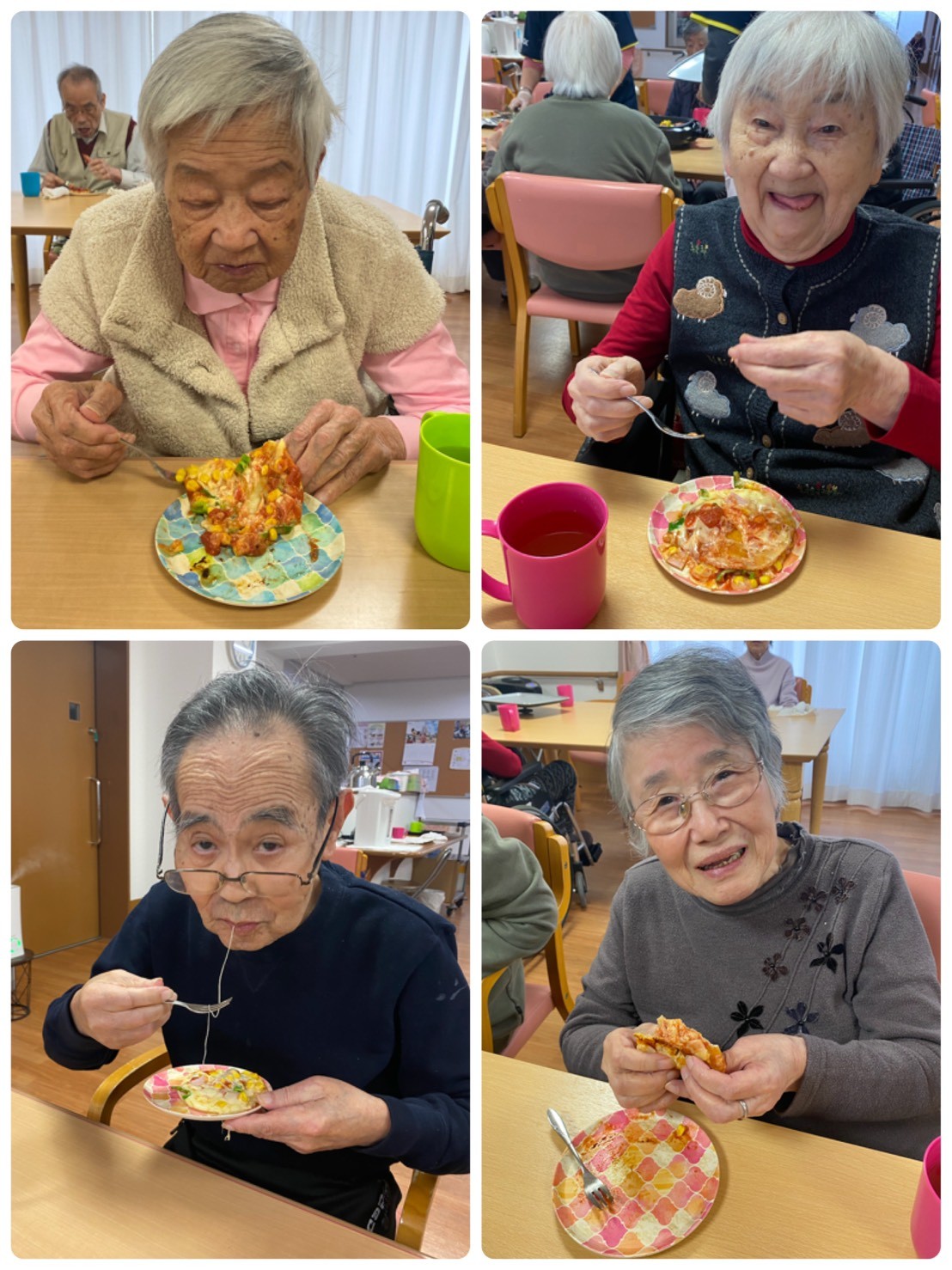 流石皆様ベテラン主婦(拍手)テキパキと作業されていましたよ☆ 『焼き立てで美味しい!』『チーズが最高♬』『色んな野菜が摂れて良かったわ♡』などなど、大好評でした(^。^) こんな便利なピザ生地が売っているんですね☆また是非やりましょうね♬