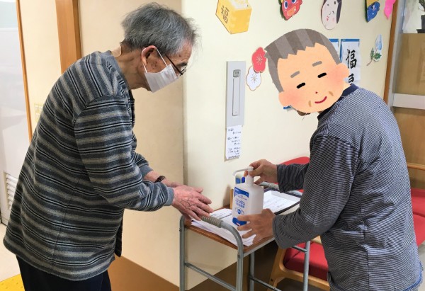 書道クラブ会場であるコミコミルームに入室される前に、手指消毒&マスク着用いただきます。
