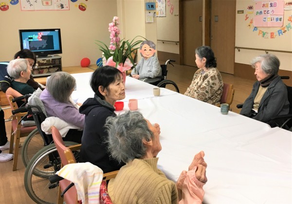 その後1階フロアーも続きまして1月生まれの入居者様のお祝いをいたしました!