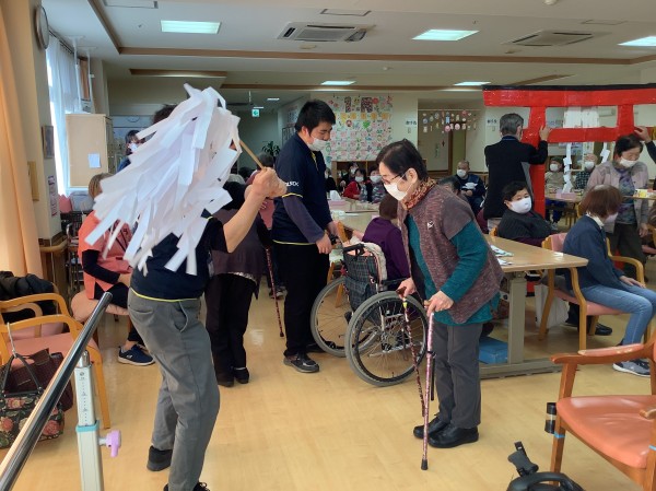 1月4・5日に初詣を行ないました! まずは鳥居をくぐり、お賽銭をします お金はデイサービスの手作りお札を使っています( ・∇・