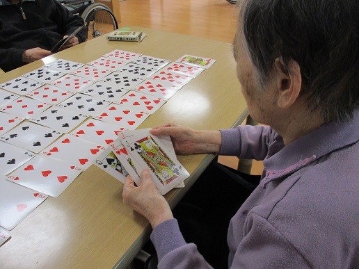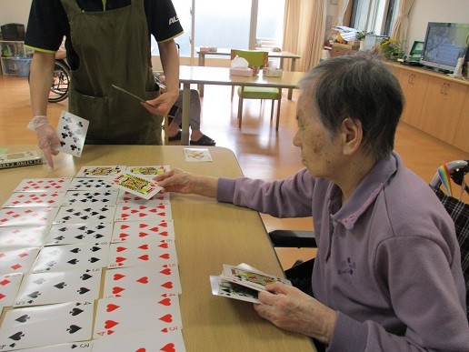スタッフと入居者様大きいトランプで対戦!!