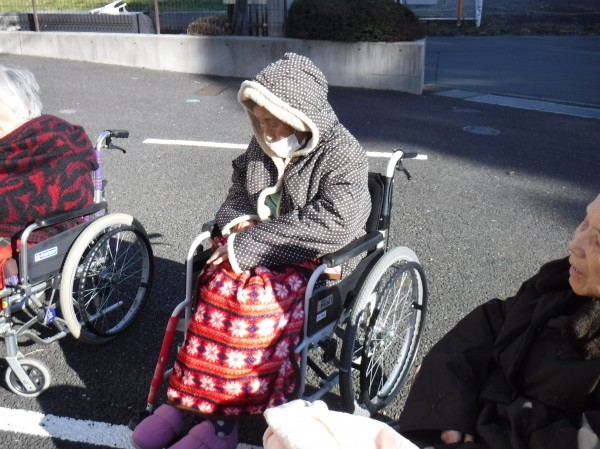 金が谷の皆さんは、寒くても元気に外気浴に出ます。