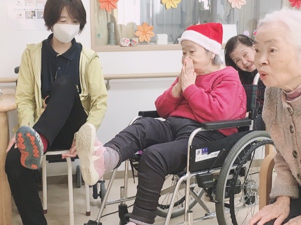 今度は脚の体操です!けっこう上がりますね!