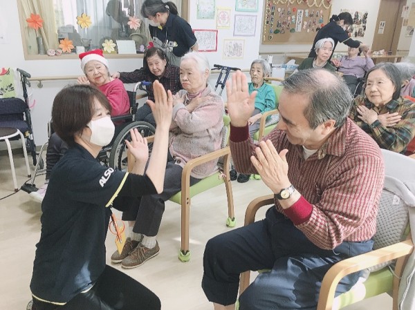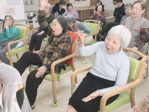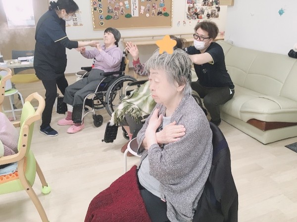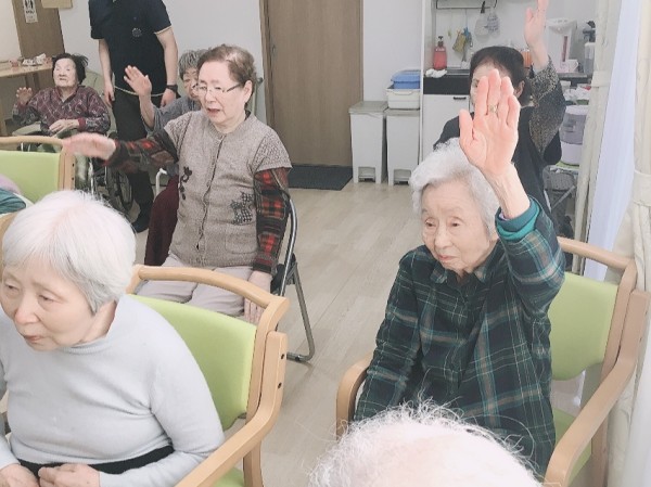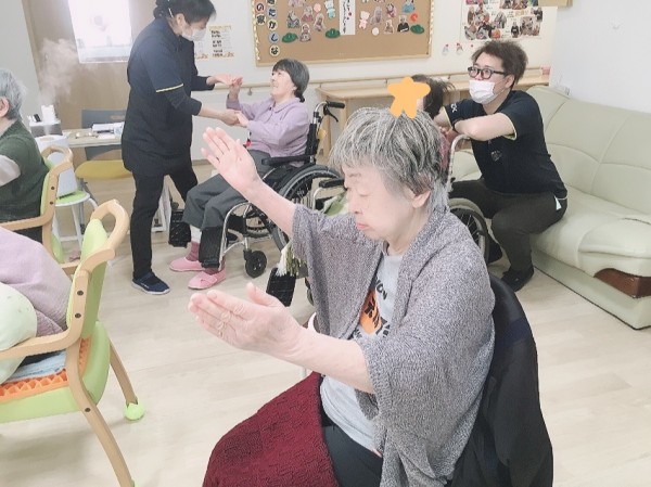 各施設で職員が前に立ってお手本になります!