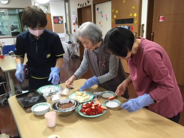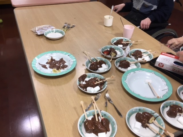 皆さんでチョコレートフォンデュを作って食べました。