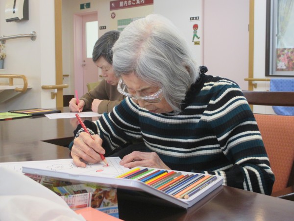 今日のレクリエーション「塗り絵をしているご様子」をアップさせて頂きます。 (((o(*゚▽゚*)o)))