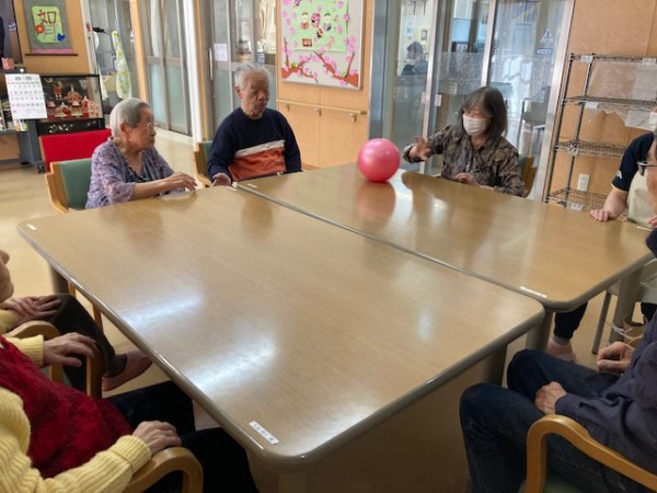 フロアにいらっしゃったご利用者でボール遊びをしながら歌をうたいました!!!