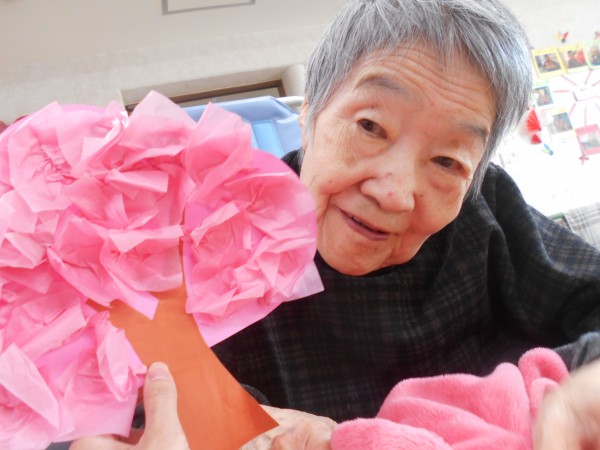 桜の花びらになるんですよとお声かけすると「そお~」と感心されております。