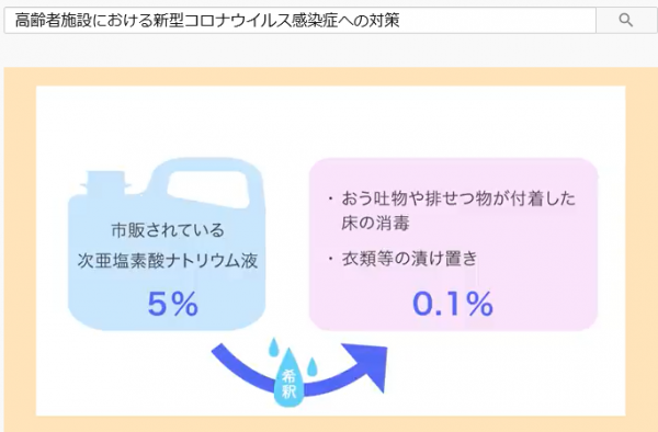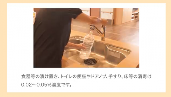 物の消毒に限っては次亜塩素酸ナトリウム液(ワイドハ○ターなど)を使うこともできます。