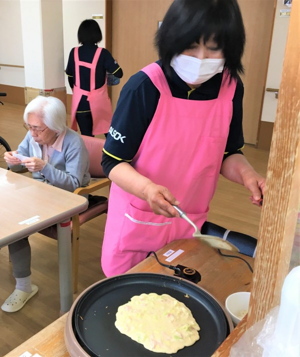 そう、今回のお楽しみおやつはズバリ!お好み焼きでした!!!(*^▽^*)