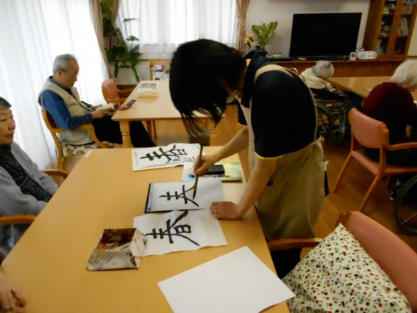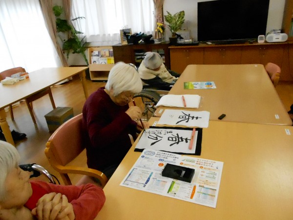 先日2階で行われた【習字】レクの様子です(^^)