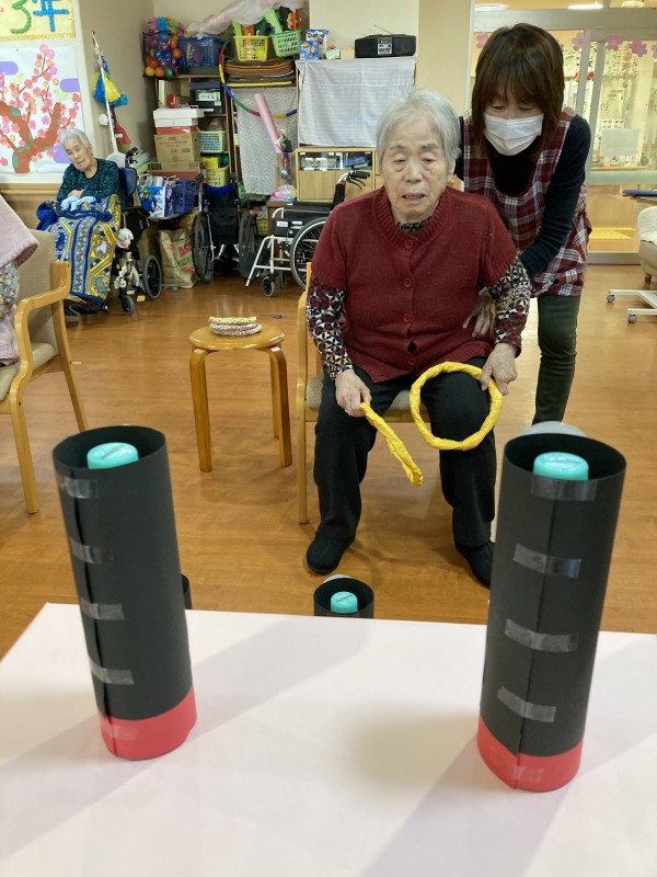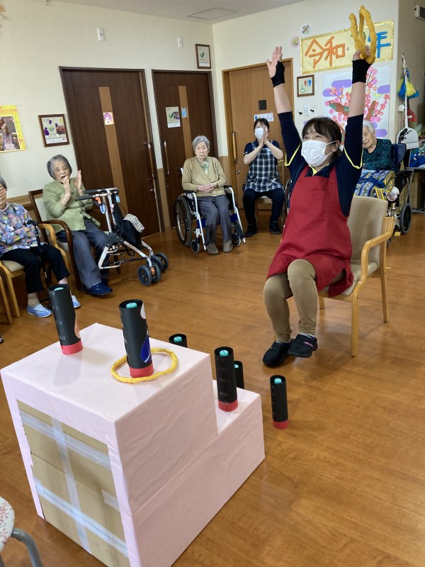 まずは1ユニット、2ユニット対抗の輪投げです!!!