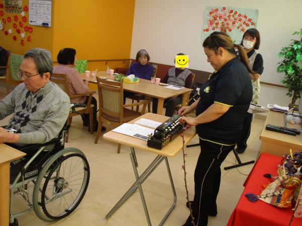 キーボードの演奏に合わせて、皆さんでうれしいひな祭りを歌ったり、写真撮影をしたり、楽しいひと時を過ごされました。