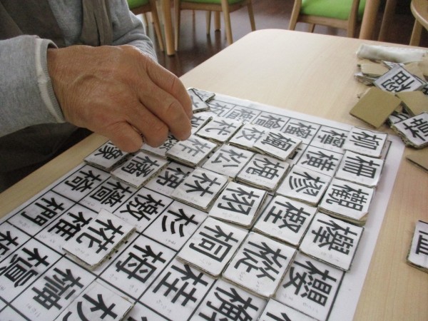 本日3階に上がってみるとN様テーブルの下を向いて手を動かしていました(^^) 何をしているのか気になって寄ってみると… 【木】へんの漢字パズルをしていました(^o^)