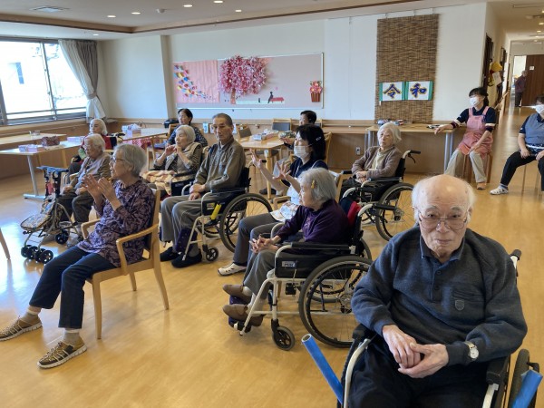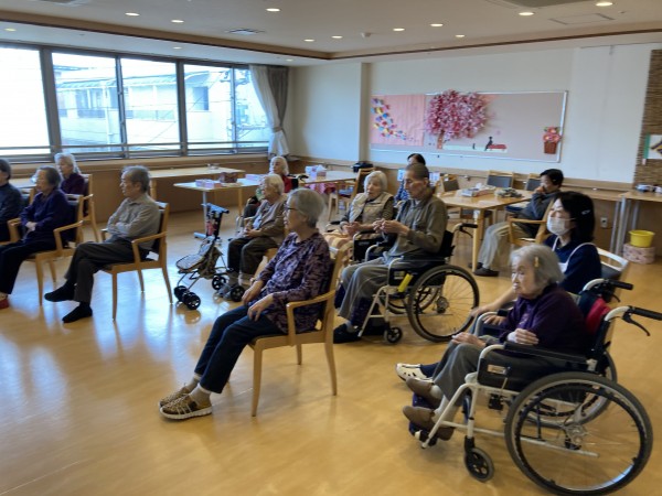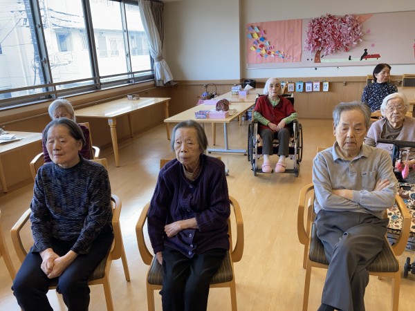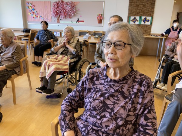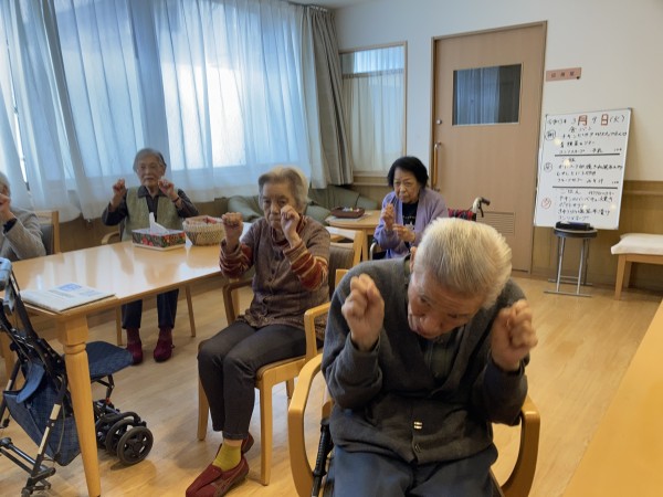 1Fの利用者様は体操の流れを把握している為か、先生が動く前に動き出すぐらいベテランさんが多いです。