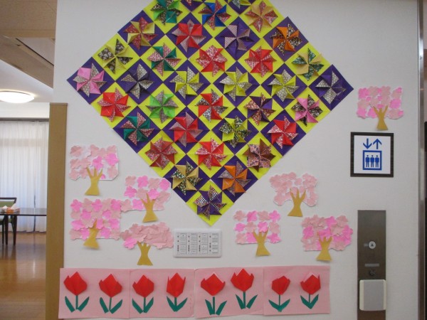 レクリエーションのご様子「桜????の張り絵」をアップさせて頂きます。 (((o(*゚▽゚*)o)))