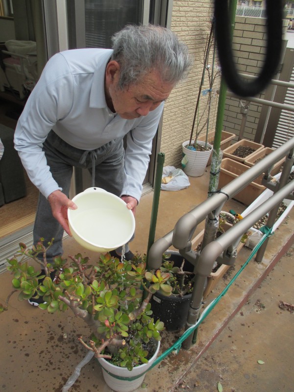 寒い冬を越した金のなる木(カネノナルキ)に魔法の栄養剤を!(^^)!