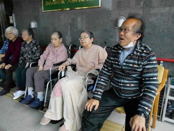 お昼下がり1階2階3階の入居者合同で(日向ぼっこ&お散歩)を楽しみました♫