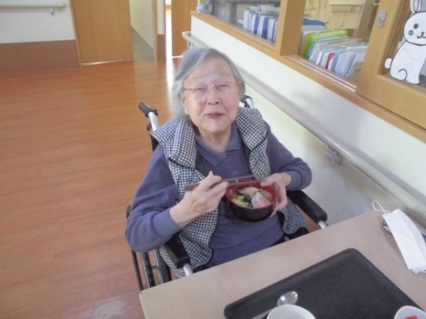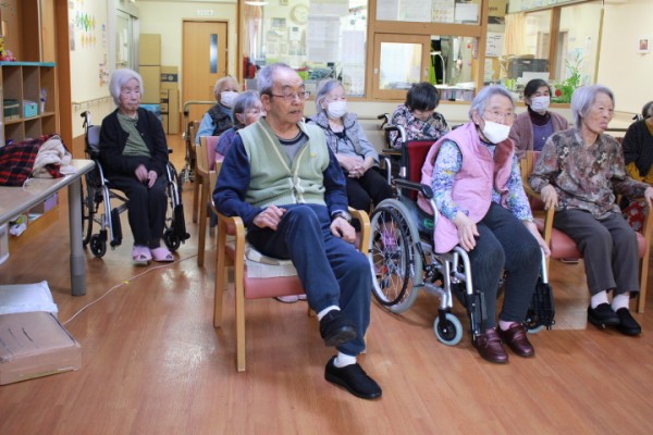 こんにちは!グループホームみんなの家 蕨の3月4日~17日までの、ご利用者様のご様子をまとめてブログにしてみました。3月に入り新しいご入居者様を迎え、3月3日のひな祭りの様子は、前回のブログでご紹介しました。その後、寒かったり暖かくなったりの毎日、コロナ化で無ければ散歩や、花見ができるのですが皆様窓越しに外を眺められ、外の空気を吸いたそうにされています。やはり春ですね。心が弾むのでしょうねだからスプリングと言うのでしょうか?さて、3月4日は、今月のリモートNõAエクササイズの1回目に皆様参加され体をほぐされました。3月5日昼食のメニューは、醤油ラーメン(チャーシュー3枚入り)チルドメニューになって2ヶ月、皆様とてもよく召し上がられ、ほとんど残飯が出なくなりました。喜ばしい事です。また、午後2時から避難訓練を行いました。コロナ禍で皆様散歩が出来なくなり、足が弱くなっているのか、階段を降りることが出来ず、やむなく火元から一番遠いお部屋に誘導避難しました。上るより降りる方が怖いですよね!3月6日、3階の皆様、花より団子ではないですが、桜のお皿に団子が2本貼りえで各居室の表札を作りました。3月7日のお昼食は海鮮ばらチラシ寿司でした。3月9日リモートNõAエクササイズに皆様参加され、慣れた様子で体を動かされておりました。3月15日、昼食はお刺身定食でした。今までほとんど昼食に生ものが出なかったので皆様残さず完食されました。3月17日第3回目のリモートNõAエクササイズに参加され軽快に?体を動かされていました。3月前半は、このように過ごされました。3月になり、急に暑く成ったり、寒くなったり大雨が降り台風のような防風雨になったり、目まぐるしいですが、コロナに感染もされずお元気に過ごされております。
