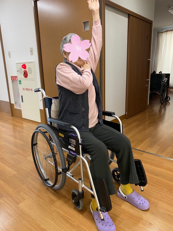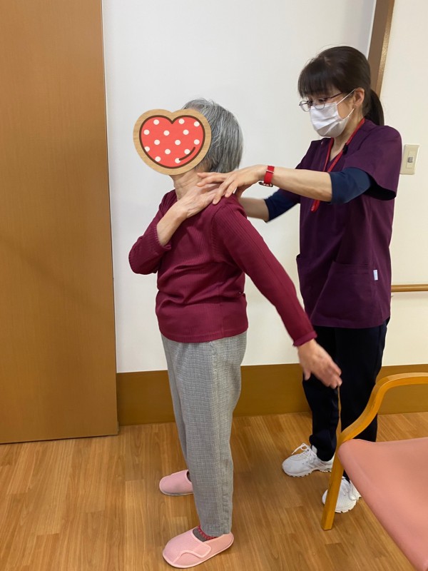 ◉ナースによる『機能訓練』を意欲的に受けられる方←腰もしっかり伸びていますね☆腕もこんなに上がるようになりました(^。^)
