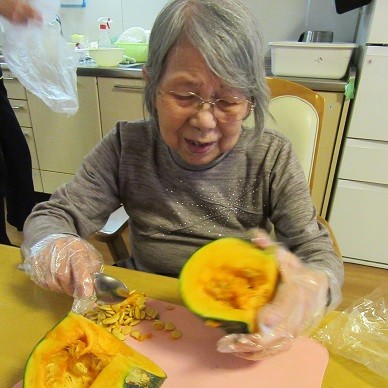 グループホームかたくりの里六郷では入居者さんと一緒に食事作りを行っています。