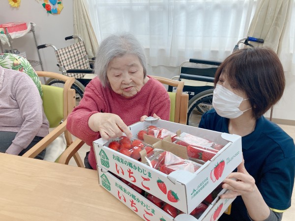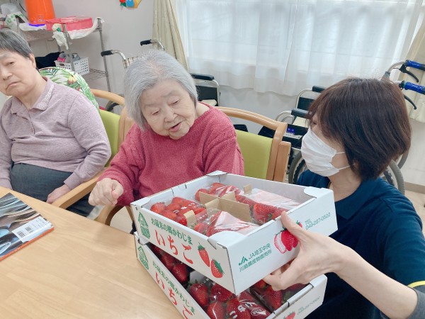 先日、ご入居者様宛てに立派ないちごが届きました!