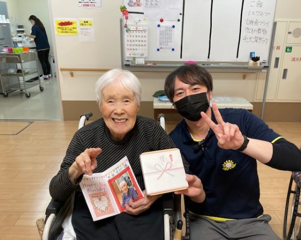 職員手作りのバースデーカードと