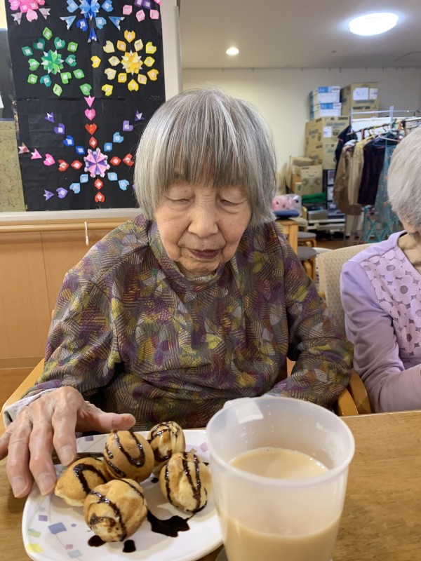 先日手作りおやつとして、たこ焼き?ではなく、たこ焼き器でホットケーキを焼きました(^O^)
