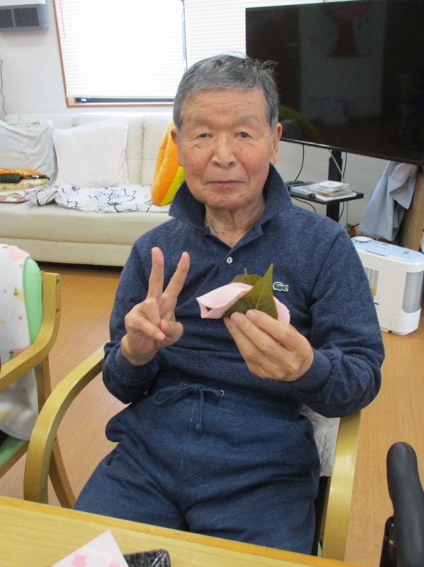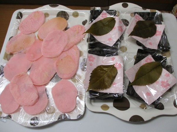 桜の葉とあんこをまいて、召し上がって頂きました♪