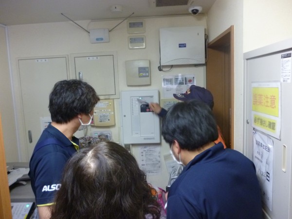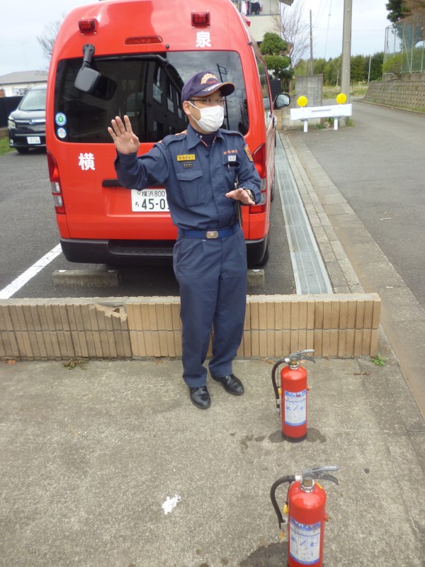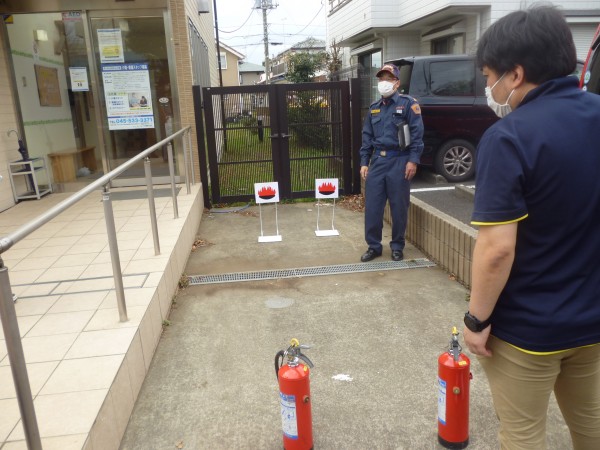 自動火災報知機の説明を受け、初期消火訓練を行いました。