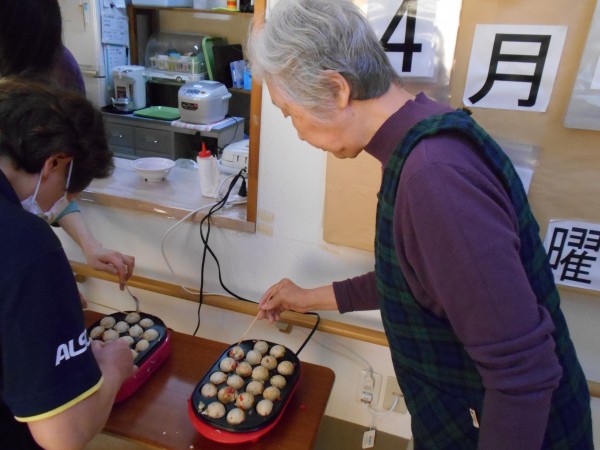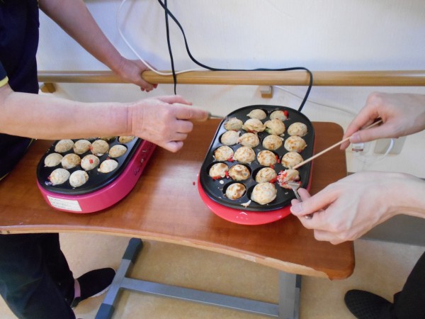 先日、入居者様とホームでたこ焼きを作りました。