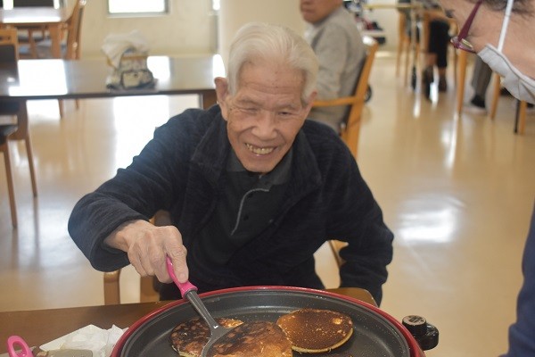 生地を少しねかせて、ホットプレートで
