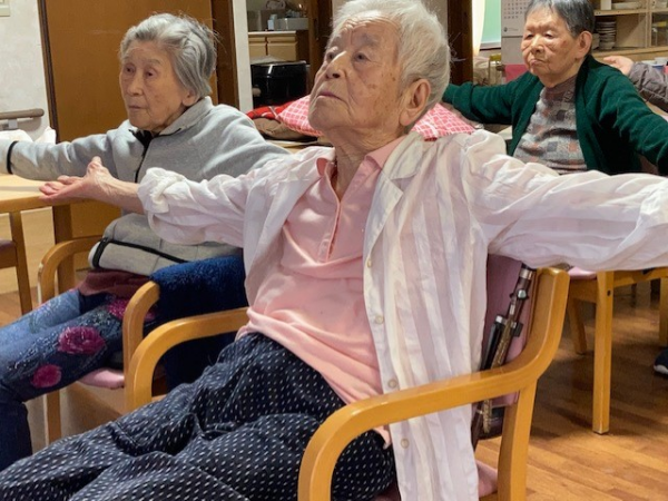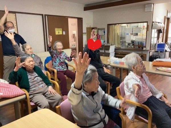 先日行われました「いきいきリズム体操」ついてご報告させて頂きます。前回は岡庭先生をホーム内にお呼びし一緒に体操しましたが、今回はリモートにて(別会場にて中継を繋いで)参加しました。