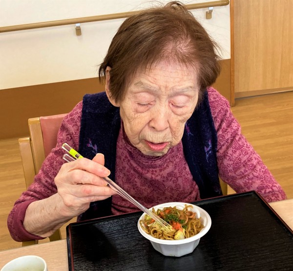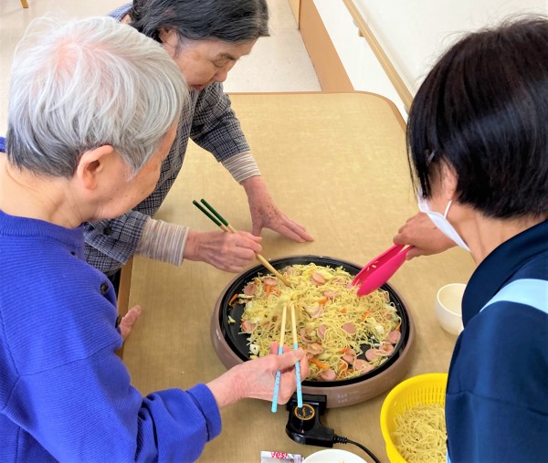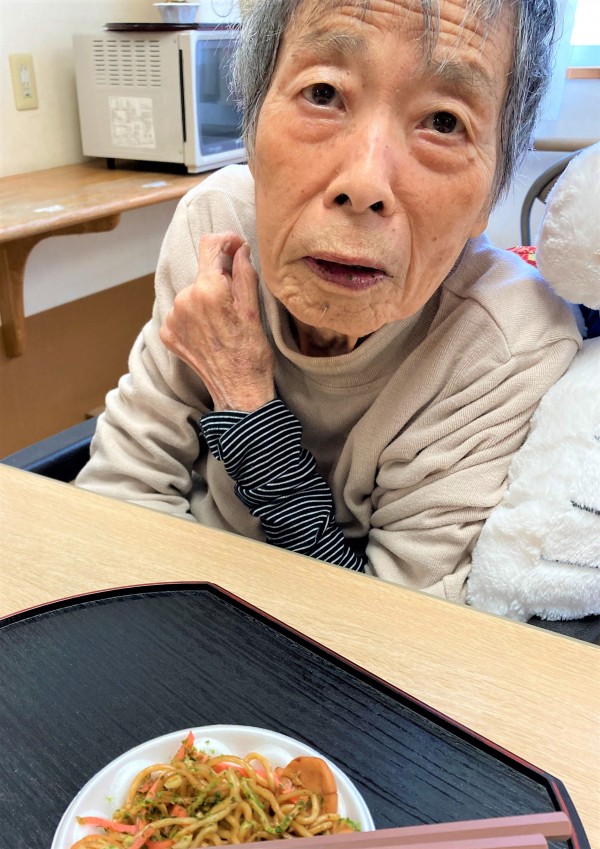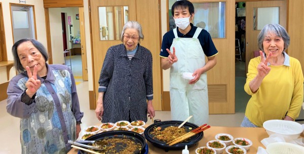 入居者様5名とスタッフ2名が協力して作った渾身のやきそばです(*^。^*)