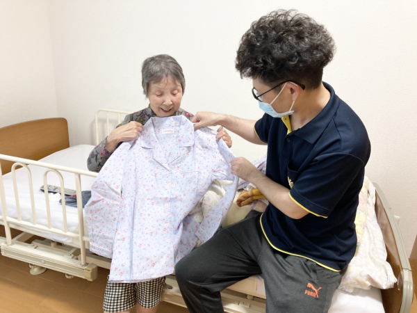 『素敵なデザインのパジャマね』と職員と記念にパシャリ(^^♪