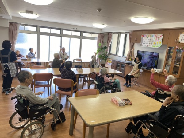 二階フロアでは、本日も昼食前に皆様大変意欲的に『集団体操・口腔体操・早口言葉』に参加されていました(๑˃̵ᴗ˂̵)