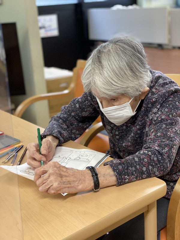 塗り絵の最中はすごく集中されていました。すごい集中力です!
