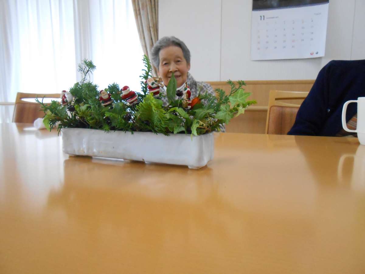 入居者様、職員ともどもクリスマスの華やかな飾り付けを楽しんで