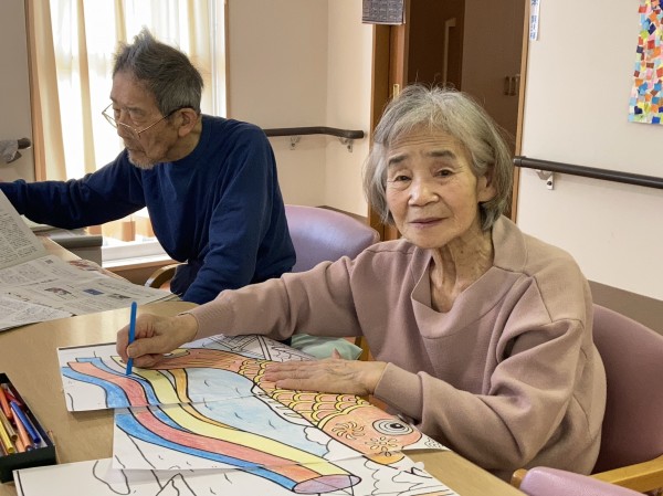 と言うことでグループホームみんなの家・府中のご利用者様に、鯉のぼりの飾り物作成をして頂きましたのでご紹介致します。