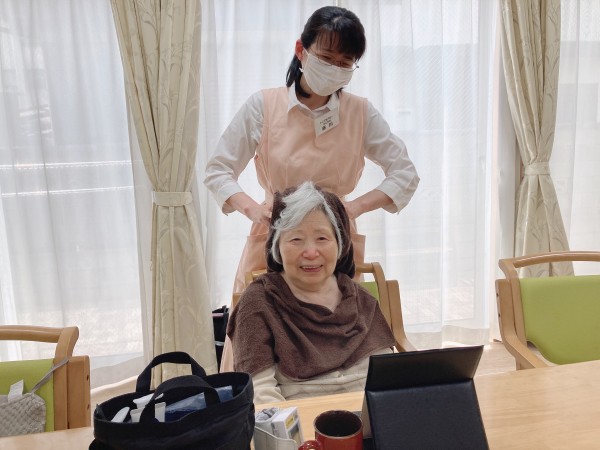 とっても優しいセラピストさんが足やお顔のマッサージをして下さり、受けられるご入居者様はは癒しのひと時を過ごされています❀