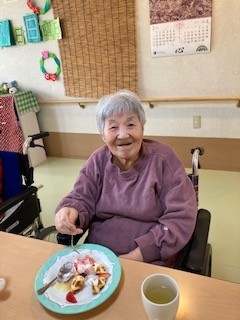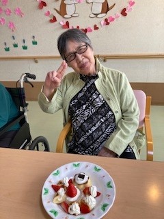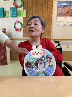 フロアの入居者様にお祝いしてもらい