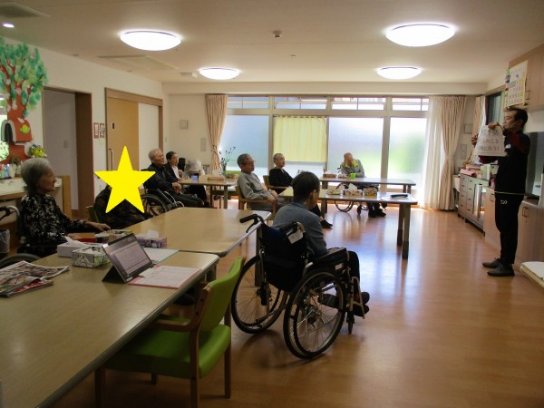 大きく腕をあげて岡田先生のもと体を動かしている入居者様をみてスタッフとても驚きました!!