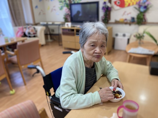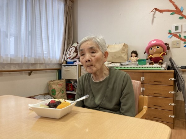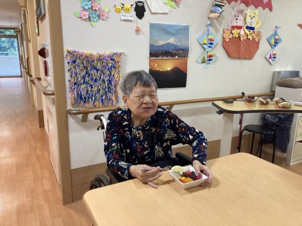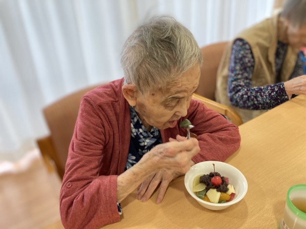 おやつに「フルーツ白玉」を手作りしてお出ししました。